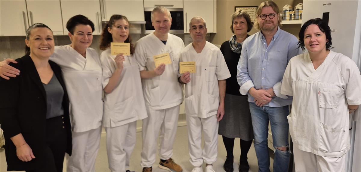 Fra venstre: Monica Roaldkvam, Synnøve Klovning, Kataryna, Anatolii, Kamiran, Margrethe Lothe og Torbjørn Djuvstad. Til høyre: Åshild Sivertsen.