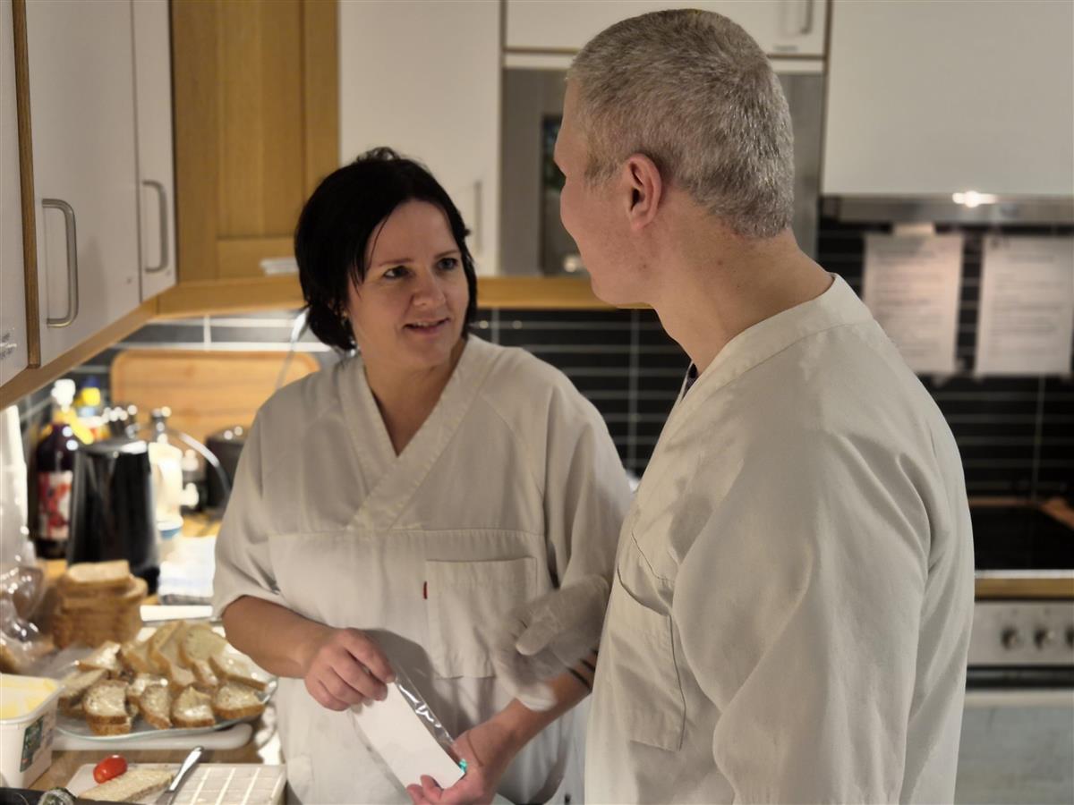 Arbeidsoppgavene gir mestring og erfaring. Etter den travle starten fortsetter læringen gjennom samarbeid, kommunikasjon og små samtaler i løpet av dagen. Etter frokost hjelper Anatolii til ved bordet, mens Kataryna følger en beboer tilbake til rommet. – Jeg lærer nye ord hver dag, og jeg forstår mer og mer hvordan vi jobber her i Norge, sier hun.